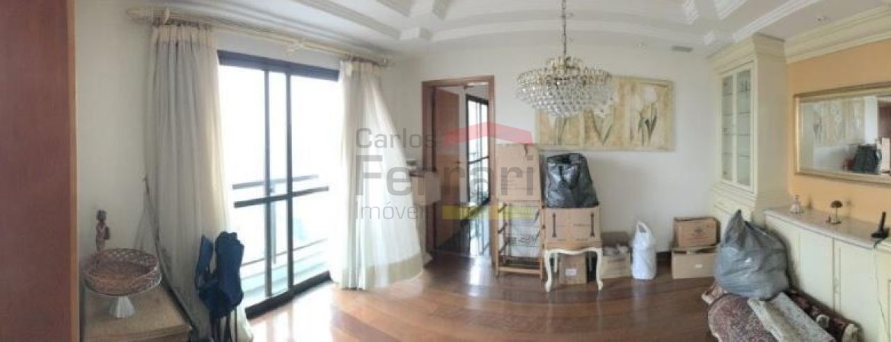Apartamento com quatro dormitórios amplos, sendo dois suites. Os quatro com armários planejados de primeiríssima qualidade. Três banheiros sociais com banheira de hidromassagem, box blindex .e armários. Sala de jantar, sala de estar para dois ambientes. Hall de entrada e um lavabo. Área de serviço com dependência de empregada completa (dormitório e wc) com armários planejados. Copa e cozinha com armários planejados. Adega. O piso dos dormitórios e salas é em madeira maciça. Duas vagas de garagem cobertas e paralelas