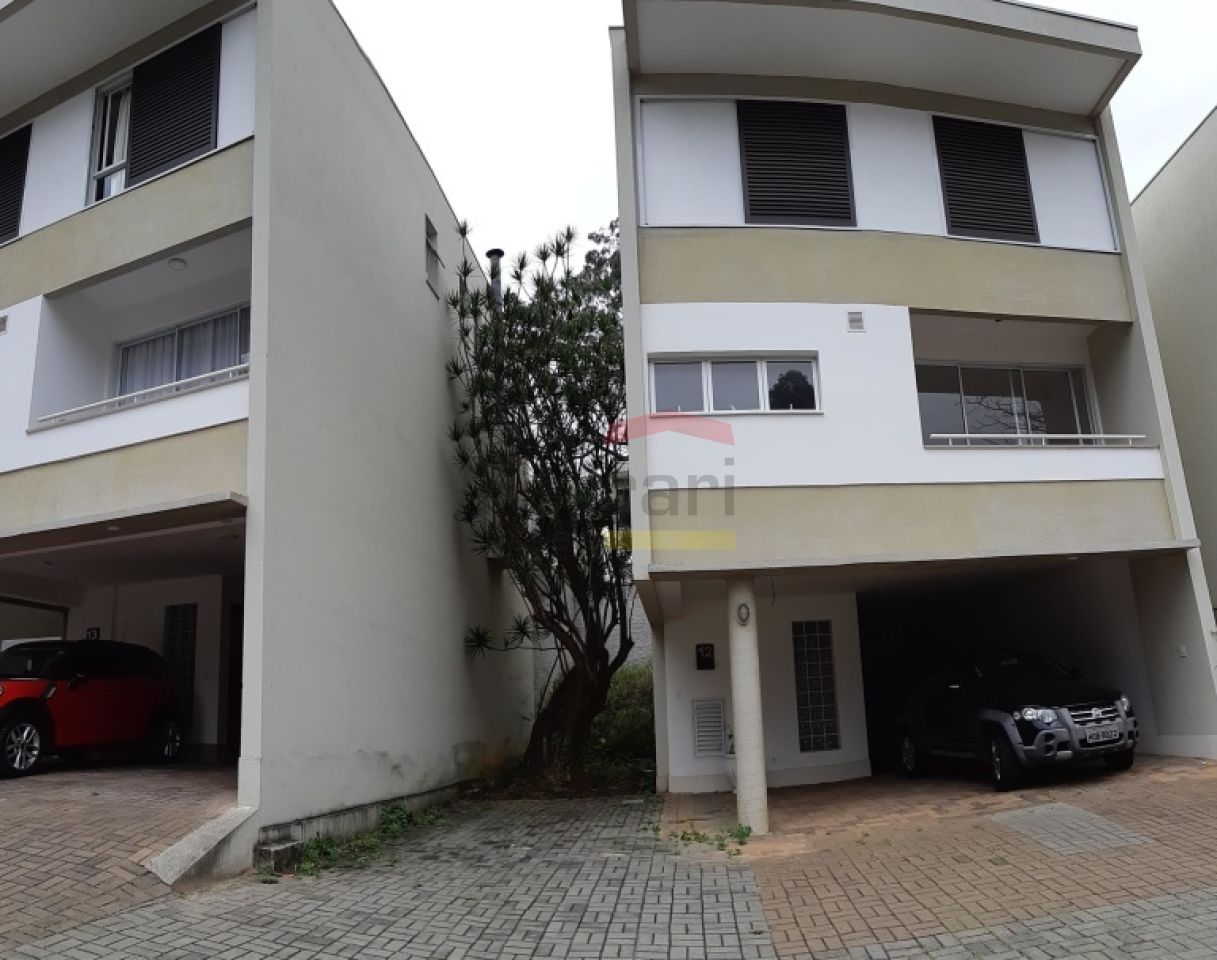 Sobrado novo em condomínio . São quatro dormitórios, sendo três suítes e quatro vagas. No térreo tem : Sala para 3 ambientes, Cozinha tipo americana, lavabo, A.S., banheiro de empregada, despensa/dorm. empregada, terraço integrado à cozinha para churrasqueira, e jardim externo No pavimento superior tem : suítes, sendo que duas com espaço para closet e a suíte master com jardim de inverno + terraço descoberto. No terceiro pavimento Espaço Gourmet com : Salão com pia e Balcão tipo bar com espaço para geladeira, lavabo, terraço com SPA para seis pessoas com deck, cromoterapia e tratamento de água com Ozônio (todo fechado em vidro e com teto retrátil) + espaço descoberto para solário. Elevador para duas pessoas, todo panorâmico que serve os três pavimentos.